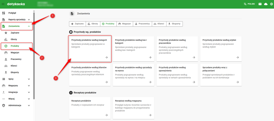 Po zalogowaniu się do panelu administratora klikamy w Zestawienia à Produkty à Przychody produktów według kategorii.